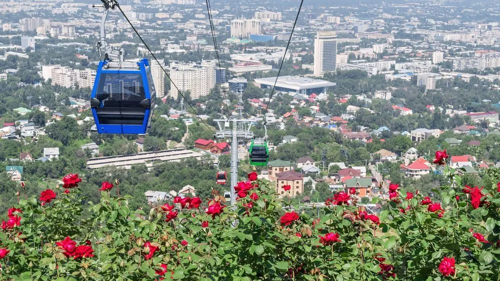 Scenic cable car ascending Kok-Tobe hill with panoramic views of Almaty city and Tien Shan mountains Attractions