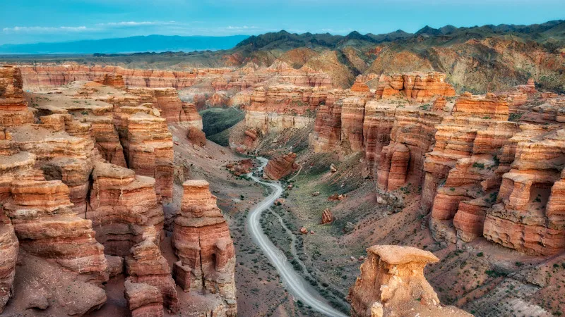 - 08:00–11:30 / 12:00: Drive across the Kazakhstan steppe toward Charyn, with one or two rest stops at petrol stations or small cafés. Enjoy views of the distant Trans‑Ili Alatau range in your rearview mirror and pass by roadside Kazakh cemeteries with their ornate, mausoleum‑like structures.